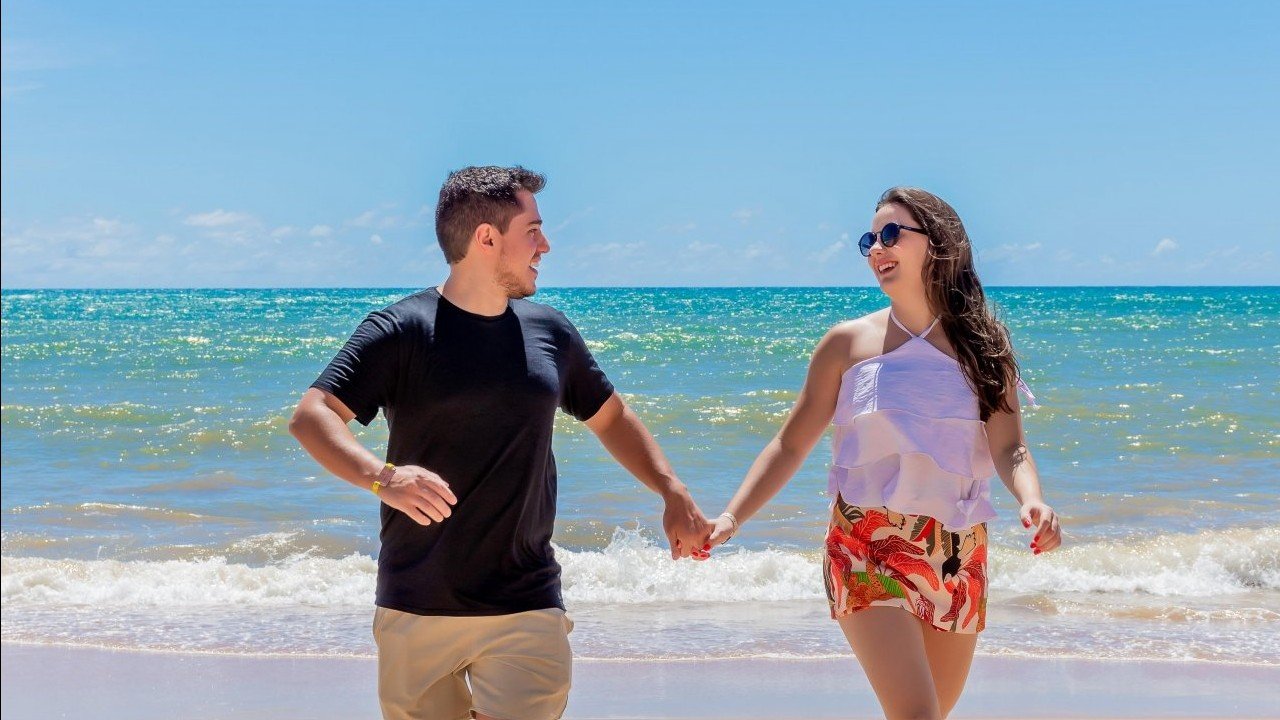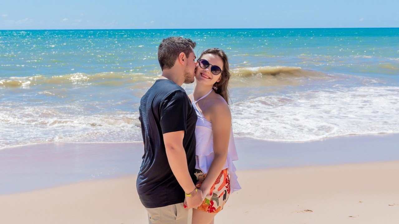 A nossa história começou em fevereiro de 2021, quando o mundo ainda estava em pausa, mas a gente não. Foi um encontro que virou presença, que virou plano, que virou casa. Entre muitas viagens, praias, momentos simples e outros inesquecíveis, fomos construindo um amor maduro, divertido e cheio de parceria. E quando a vida pediu força a gente confirmou o que já sabia: juntos, somos mais fortes. Agora, chega a hora de celebrar tudo isso com quem a gente ama: nosso “sim” e o começo de uma nova fase.